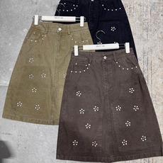 TRUST ME 高腰烫钉洗水牛仔半身裙显瘦A字裙过膝中裙7189
