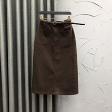 咖色高腰中长牛仔裙女25秋季时尚宽松洋气休闲开叉A字半身包臀裙