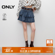 ONLY2025秋季新款显瘦A字双层荷叶裙摆设计高腰短裙牛仔半身裙女