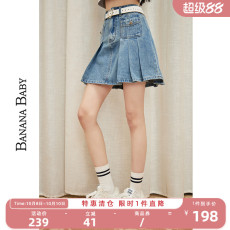 BANANA BABY2025新款百褶牛仔半身裙女复古风高腰显瘦A字短裙