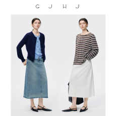 gjhj牛仔半身裙 经典磨毛 纯棉高腰A字后开叉 2025秋季 复古慵懒