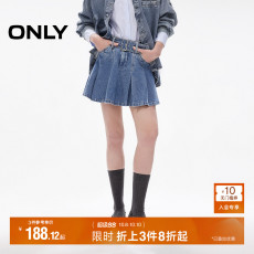 ONLY2025秋季新款甜美减龄腰带装饰A字百褶高腰短裙牛仔半身裙女