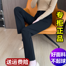 拉夏贝尔黑色西装裤女秋冬高腰直筒职业正装工作裤九分休闲烟管裤