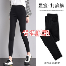 高腰显瘦打底裤女外穿春秋冬款紧身长裤加绒大码胖mm小脚裤子黑色