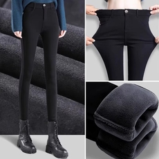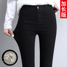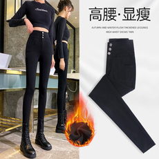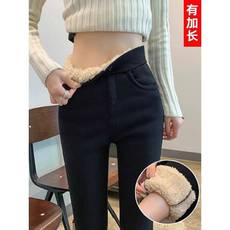 高腰加绒牛仔裤女冬保暖弹力小脚裤外穿黑色铅笔裤加厚加绒裤时尚