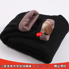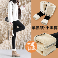 羊羔绒打底裤女秋冬季加绒加厚东北一体棉裤高腰小脚外穿黑色裤子