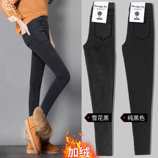 加绒打底裤女高腰外穿秋冬显瘦百搭黑色小脚紧身大码铅笔小黑裤子