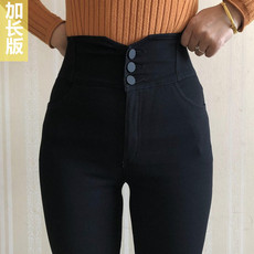 春秋百搭高腰排扣黑色显瘦弹力小脚裤修身铅笔打底裤时尚长裤外穿