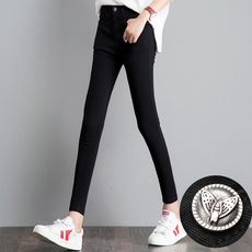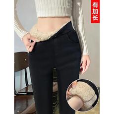 加绒牛仔裤女高腰2024年秋冬季外穿新款显瘦紧身小脚裤子黑色加厚