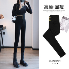 加绒打底裤女外穿2025新款高腰加厚黑裤小脚铅笔紧身小黑色裤子女