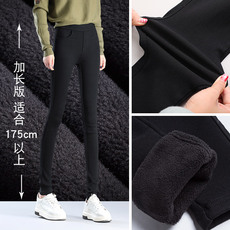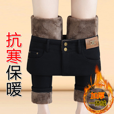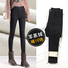 羊羔绒打底裤女秋冬季加绒加厚东北一体棉裤高腰小脚外穿黑色裤子