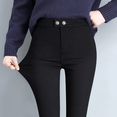 小黑裤秋冬加绒裤子高腰弹力铅笔裤春秋黑色打底裤外穿小脚裤显瘦