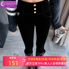 菲梦伊加绒加厚黑色打底裤女外穿冬季高腰提臀显瘦修身小脚裤长裤