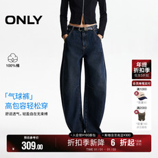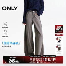 ONLY2025冬季新款修容裤撞色水洗设计宽松显瘦高腰直筒牛仔裤女