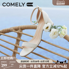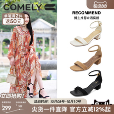 大东女鞋2025夏季新款时尚简约粗跟高跟百搭通勤舒适一字带女凉鞋
