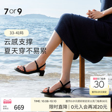 7or9黑天鹅女一字式扣带凉鞋女黑色高跟鞋通勤粗跟设计感单鞋百搭