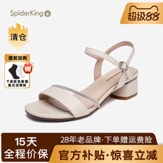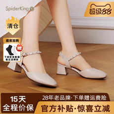 蜘蛛王官方2025夏季新款真皮女凉鞋时装百搭包头仙女风粗跟高跟鞋