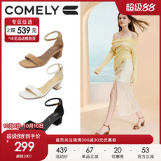 达芙妮一字带凉鞋女夏季百搭女鞋子女粗跟高跟凉鞋女绒面凉鞋女款