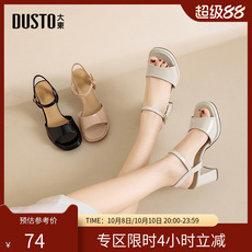大东凉鞋2025夏季新款时尚舒适粗跟高跟简约后空百搭一字带女凉鞋