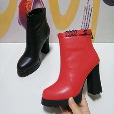 真皮短靴女秋冬款时尚防水台粗跟15厘米高跟鞋性感显瘦短筒女靴子