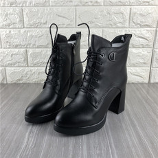 断码撤柜处理真皮女靴高跟防水台时尚短靴马丁靴头层牛皮加绒棉靴