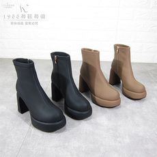 秋冬新款初秋小短靴女粗跟加绒短靴冬韩版防水台高跟鞋33-43大码