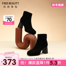 秋冬鞋子女2025新款爆款女鞋黑色绒面粗跟高跟防水台气质方头短靴