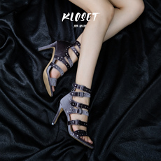 金丝绒鱼嘴鞋爵士舞高跟鞋紫色heels舞鞋跳舞短靴铆钉性感凉鞋女