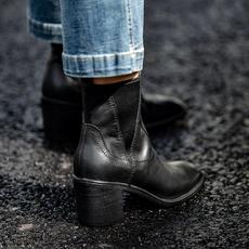 喜番记│英伦风复古黑色高跟短靴女真皮2024新款秋冬粗跟切尔西靴