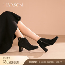 达芙妮短靴女2025新款秋冬靴子粗跟方头瘦瘦靴绒面马丁靴高跟短靴