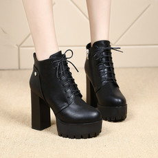 大码女靴41-43高跟靴法式粗跟马丁靴炸街瘦瘦靴配裙子穿的小短靴