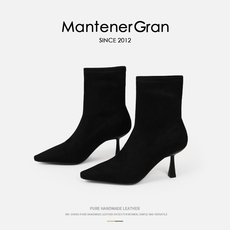 短靴女尖头高跟鞋细跟瘦瘦靴2025秋冬新款靴子女弹力中跟中筒单靴