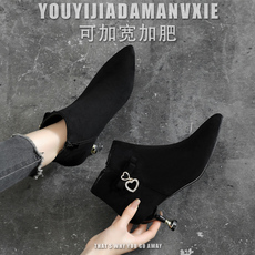 大码短靴女41一43脚肥脚宽性感尖头细跟高跟瘦瘦靴小码313233女鞋