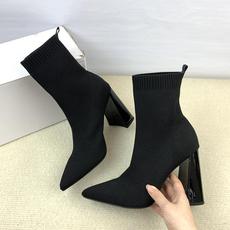 chic 强推~!巨软!25秋冬法式拼接尖头粗高跟短靴瘦瘦靴弹力袜靴
