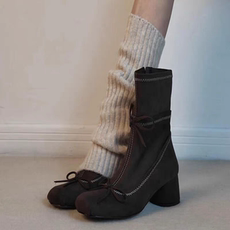 法式芭蕾风蝴蝶结高跟短靴女2025新款秋冬美拉德靴子瘦瘦靴骑士靴