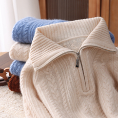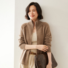 【反季清仓】戎美衣尚重磅加厚羊绒羊毛衫女高领慵懒拉链毛衣开衫