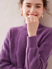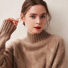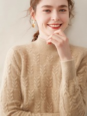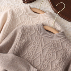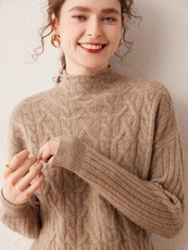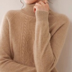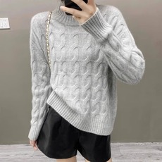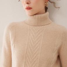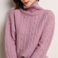 高领加厚纯山羊绒衫女宽松秋冬毛衣绞花长袖针织打底衫
