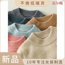 新款半高领羊绒衫女套头毛衣纯色双股加厚秋季宽松百搭针织打底衫