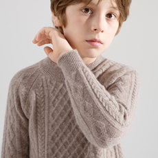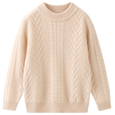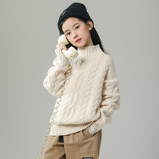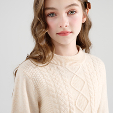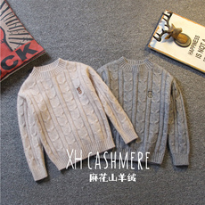 儿童款~100%纯山羊绒衫儿童半高领扭花加厚毛衣纯色宽松打底衫