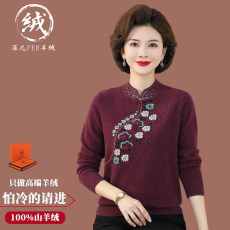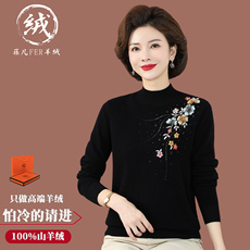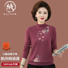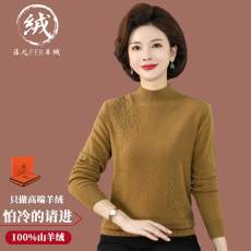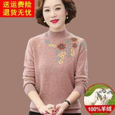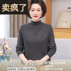 100%牦牛绒中老年人女装半高领羊绒衫妈妈款冬装加厚保暖打底毛衣