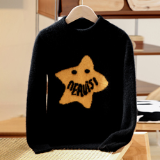 【100%羊毛】儿童半高领星星刺绣毛衣双股加厚学生保暖羊毛打底衫