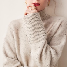 意奢重磅!花纱加厚baby小山羊绒衫女高领宽松针织打底衫慵懒毛衣