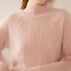 2024冬季新款加厚山羊绒衫女半高领套头席编宽松针织打底衫毛衣