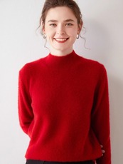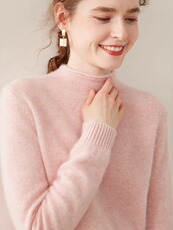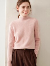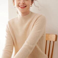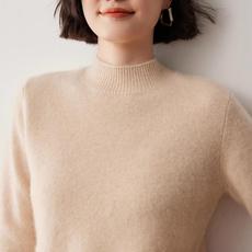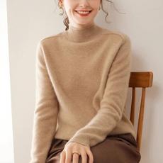 2024冬季新100%纯山羊绒衫女半高领加厚纯色宽松大码针织打底毛衣