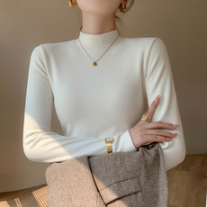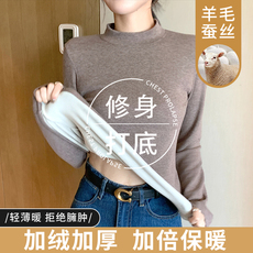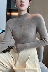 半高领100纯羊毛针织打底衫女紧身中领毛衣内搭加厚秋冬新款高级