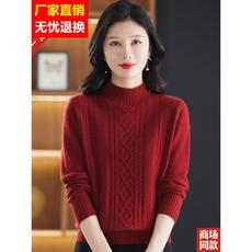 双股加厚100纯羊毛衫半高领复古毛衣秋冬妈妈装绞花羊绒打底衫女