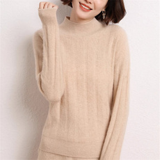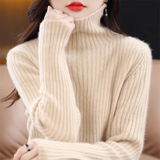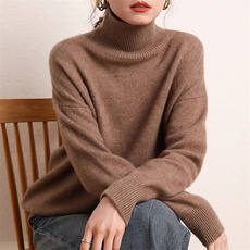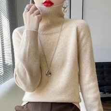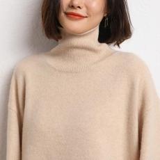 2024冬季新高领羊绒衫女亲肤山羊绒加厚高翻领毛衣宽松套头打底衫