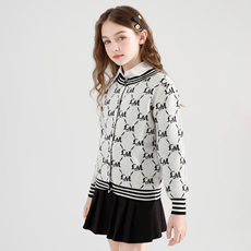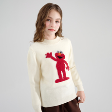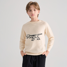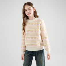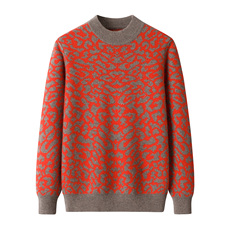 100%纯羊毛秋冬新款儿童半高领樱桃提花针织衫中大童加厚羊绒毛衣