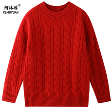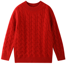 冬季新款山羊绒衫儿童半高领男童新年红大麻花加厚毛衣女针织衫