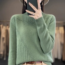 2024冬季新款加厚羊绒衫女亲肤山羊绒半高领鱼纹宽松针织打底毛衣